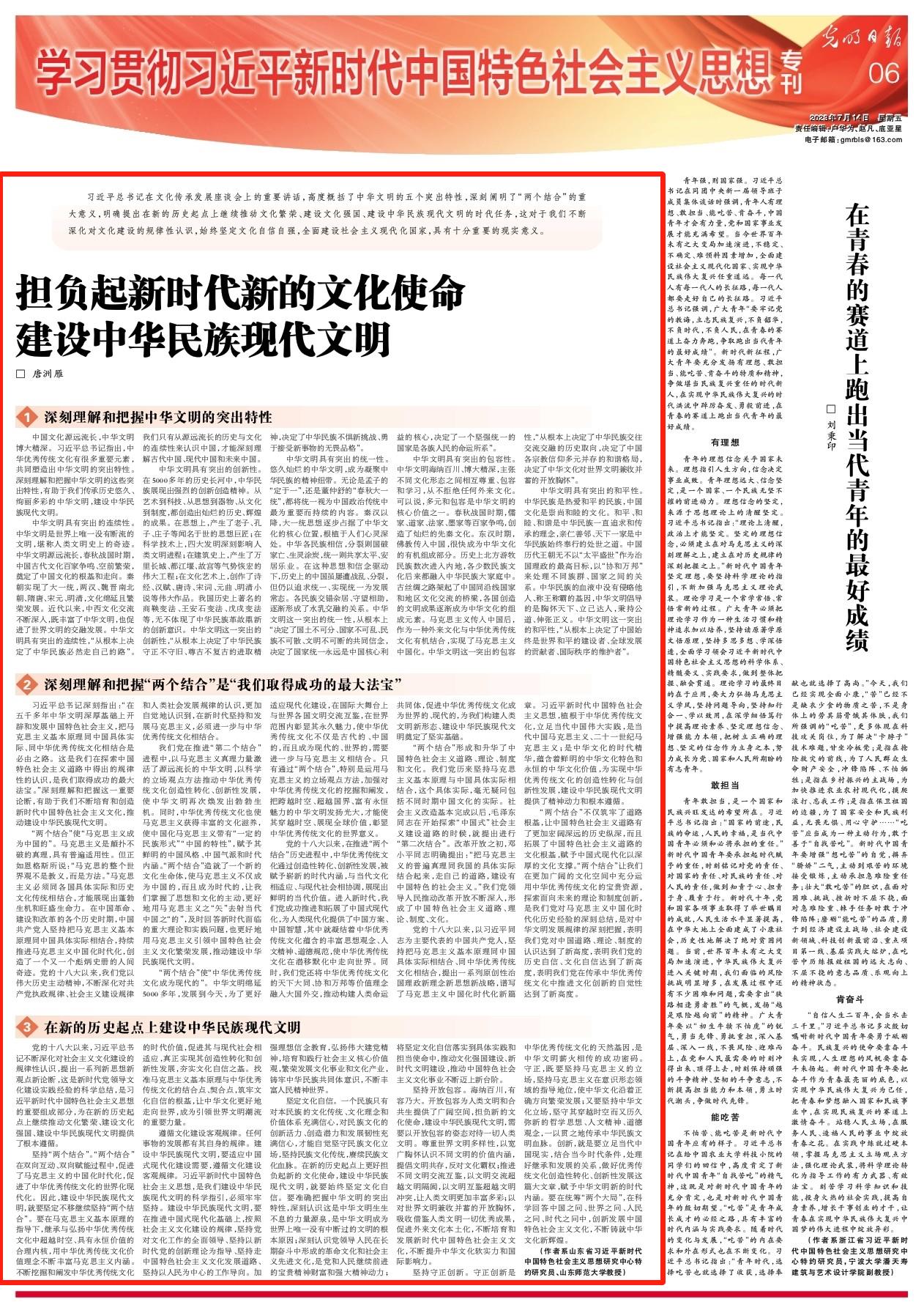 文章鏈接:擔負起新時代新的文化使命 建設中華民族現代文明-光明日報-光明網 https://epaper.gmw.cn/gmrb/html/2023-07/14/nw.D110000gmrb_20230714_1-06.htm