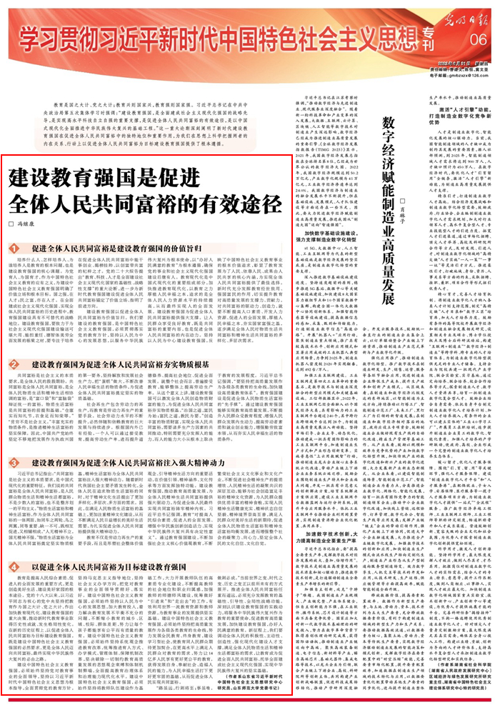 【光明日報】馮繼康:建設教育強國是促進全體人民共同富裕的有效途徑