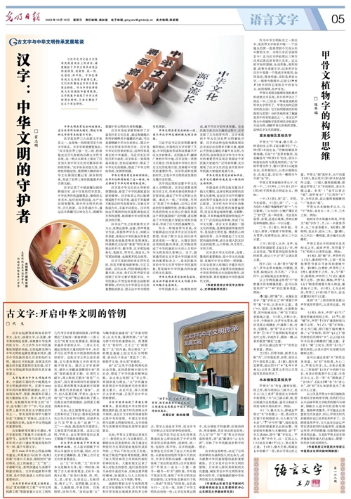 10月15日,《光明日報》05版刊發我校代生副教授文章《古文字:開啟中華文明的管鑰》,原文如下。