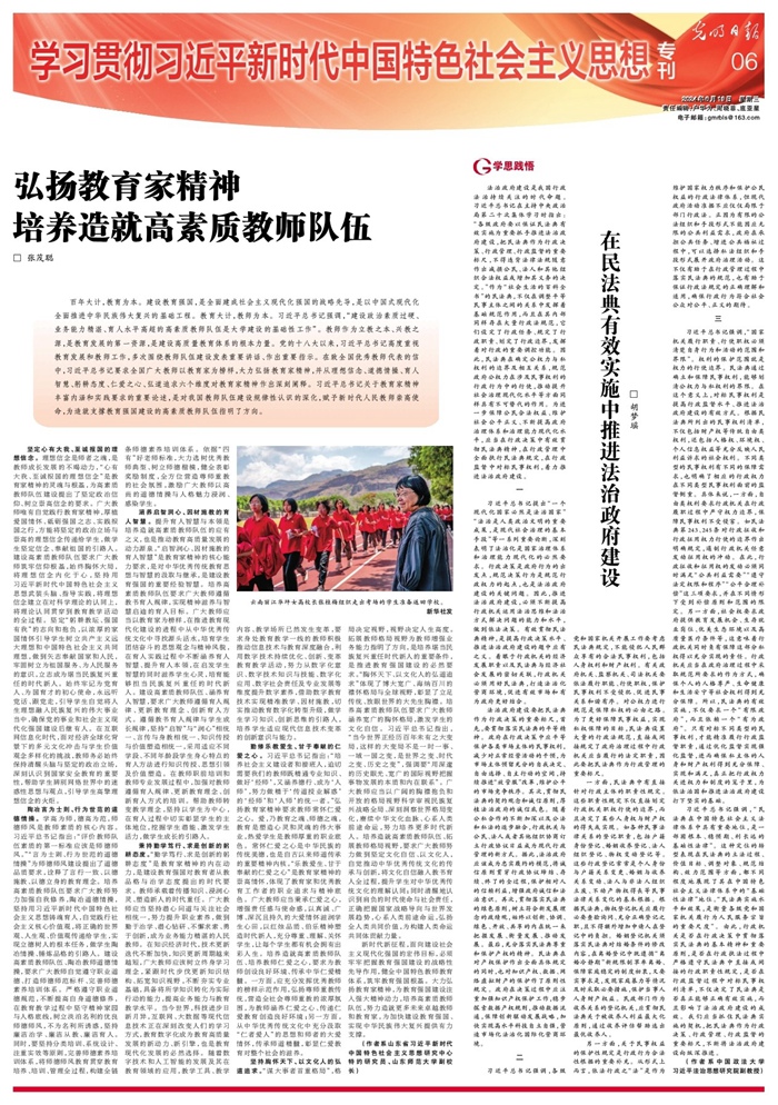 2024年6月19日,《光明日報》06版刊發山東省習近平新時代中國特色社會主義思想研究中心特約研究員、山東師范大學副校長張茂聰理論文章《弘揚教育家精神 培養造就高素質教師隊伍》,全文如下: