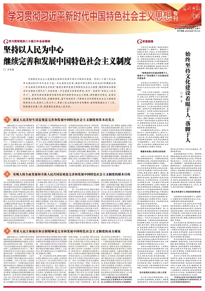 12月4日,《光明日報》“學習貫徹黨的二十屆三中全會精神”專欄刊發我校黨委副書記萬光俠理論文章《堅持以人民為中心 繼續完善和發展中國特色社會主義制度》,全文如下: