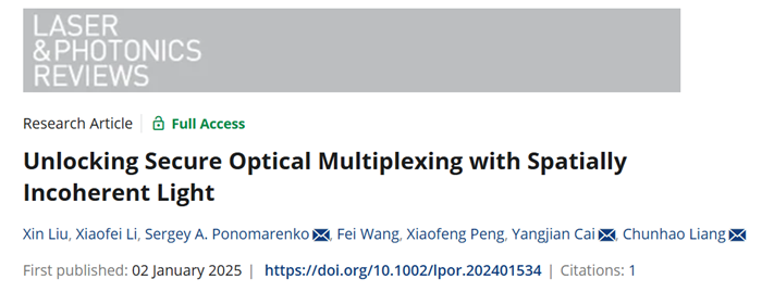 近日,蔡陽健教授團隊在國際著名光學期刊《Laser & Photonics Reviews》(影響因子9.8)上發表題為“Unlocking Secure Optical Multiplexing with Spatially Incoherent Light”的研究論文,創新性地提出并實現了非相干光場復用技術,為新一代超高安全性、大容量及高魯棒性的多路光信息復用與通信提供了全新的解決方案。