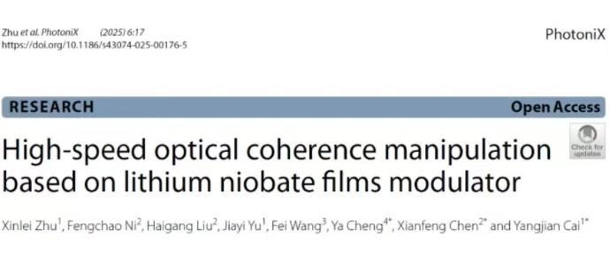 近日,山東師范大學蔡陽健教授團隊在國內著名期刊《PhotoniX》(影響因子19.1)上發表題“High-Speed Optical Coherence Manipulation Based on Lithium Niobate Films Modulator”的研究論文,創新性地將鈮酸鋰薄膜調制器應用于光場相干性調控,這一成果不僅為該領域研究人員提供了新型調制器件,也為鈮酸鋰薄膜調制器開辟了新的應用場景,展現了其在光場自由度調控中的潛力,有望在多學科交叉領域引發新一輪技術革新。