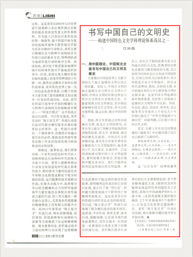 近日,《新華文摘》2017年第11期“歷史”欄目主體轉載我校江林昌教授的文章《書寫中國自己的文明史——構建中國特色文史學科理論體系淺議之一》。文章原發于2017年第2期《濟南大學學報》,為教育部人文社科重點研究基地齊魯文化研究中心“十三五”規劃“齊魯文化與中華文明轉化創新”項目,是山東省泰山學者、山東省委宣傳部“儒家元典新證與中華民族偉大復興”項目的階段性成果。