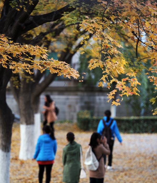 深秋的師大,亭皋木葉,深紅淺黃,秋色連波,更勝春朝。走在校園里,一草一木,一枯一榮,都演繹成師生心中最美麗的風景。正如作者師大報社王曉華總編所言:“山師最美的秋色掩飾得較深,唯有熟悉的,才能深入其中?!蔽覀兤诖懈嗬蠋熗瑢W校友積極參與到發現美、傳播美、感受美、展示美的活動中,讓我們共同感受充滿在我們身邊的一切美好!(攝影:王曉華)