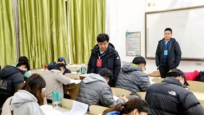1月3日,學校2021—2022學年第一學期期末考試正式開始。為進一步加強考試秩序監管,創造優良考風、學風,營造公平公正的考試氛圍,校長曾慶良、副校長滿寶元,校長辦公室(督查督辦工作辦公室)、研究生院、教務處有關負責同志在兩校區開展考試巡視工作。